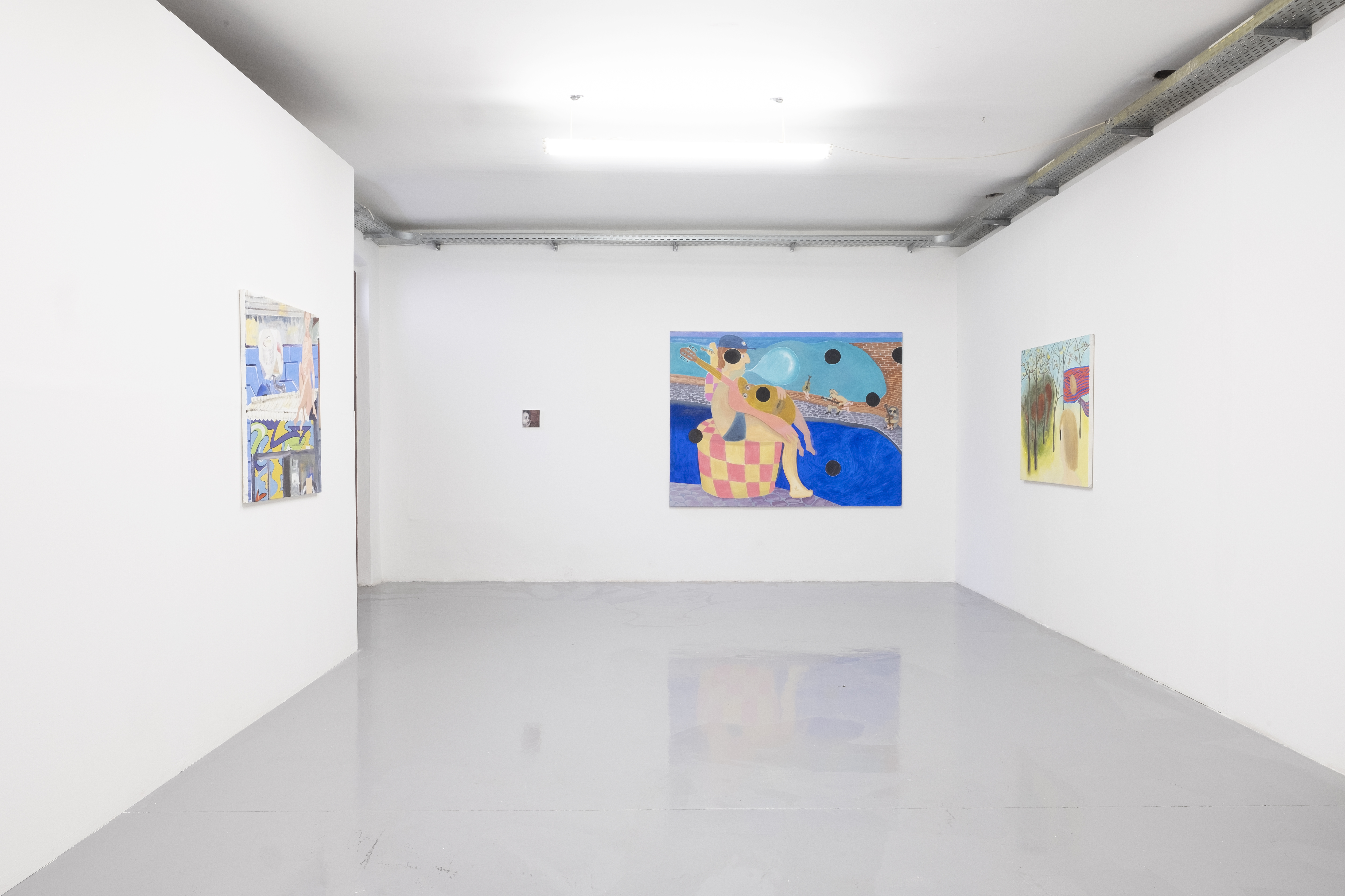 Georg Frauenschuhs großformatige Bilder beziehen sich sowohl auf Malerei und Malereigeschichte, als auch auf Bereiche außerhalb. Ihnen liegt ein gegenwärtiger Bodensatz der Online-Bilder zugrunde und sie handeln von der der Degradierung aktueller Bildsprachen. Sie zeigen menschliche Produktion und menschliche Fehlbarkeit.