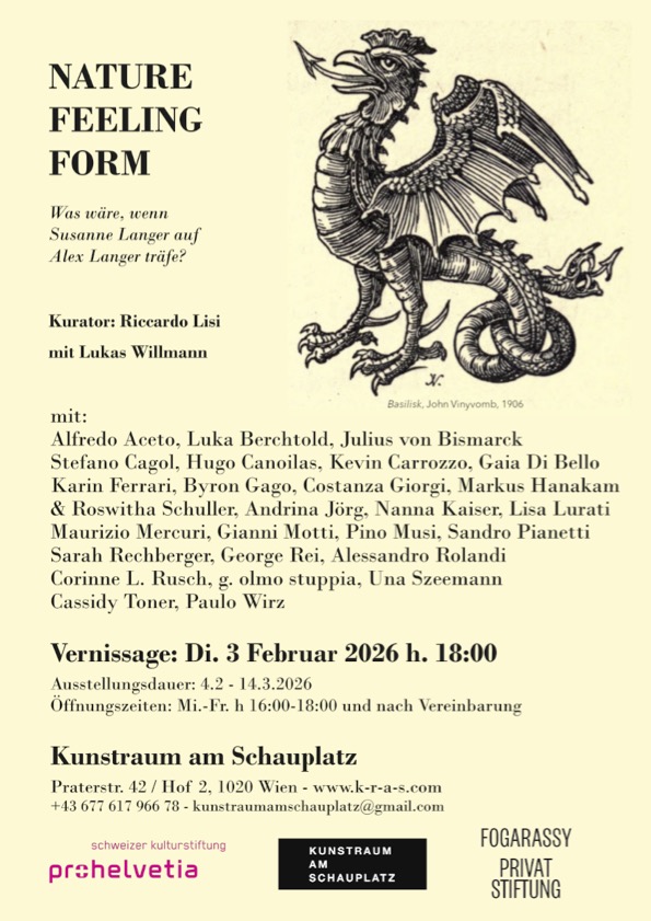 Das Projekt Nature | Feeling | Form, konzipiert vom Kurator Riccardo Lisi, findet in zwei Phasen statt. Die erste Phase wurde in den Projekträumen des Castel Belasi Museums, einem charmanten Schloss im Val di Non (Trentino), durchgeführt und brachte dank des Co-Kurators Lukas Willmann die aufstrebende Schweizer Szene mit der Wiener Szene zusammen.